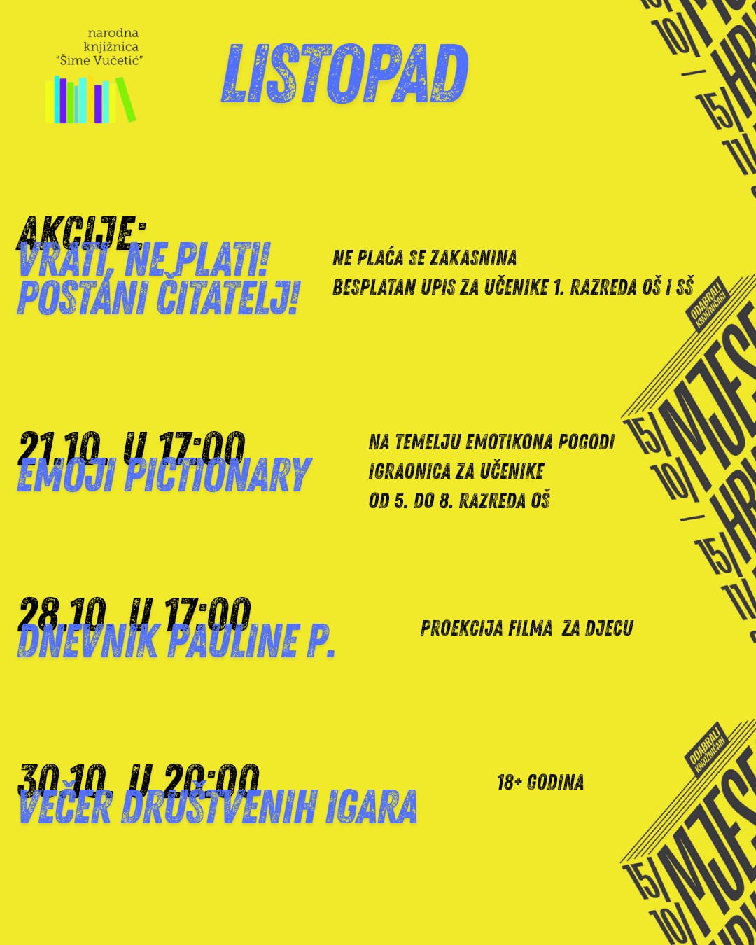 Mjesec hrvatske knjige je manifestacija koja već više od dva desetljeća okuplja ljubitelje knjige diljem Hrvatske, podižući glas za poticanje čitanja iz svakog kutka naše zemlje.