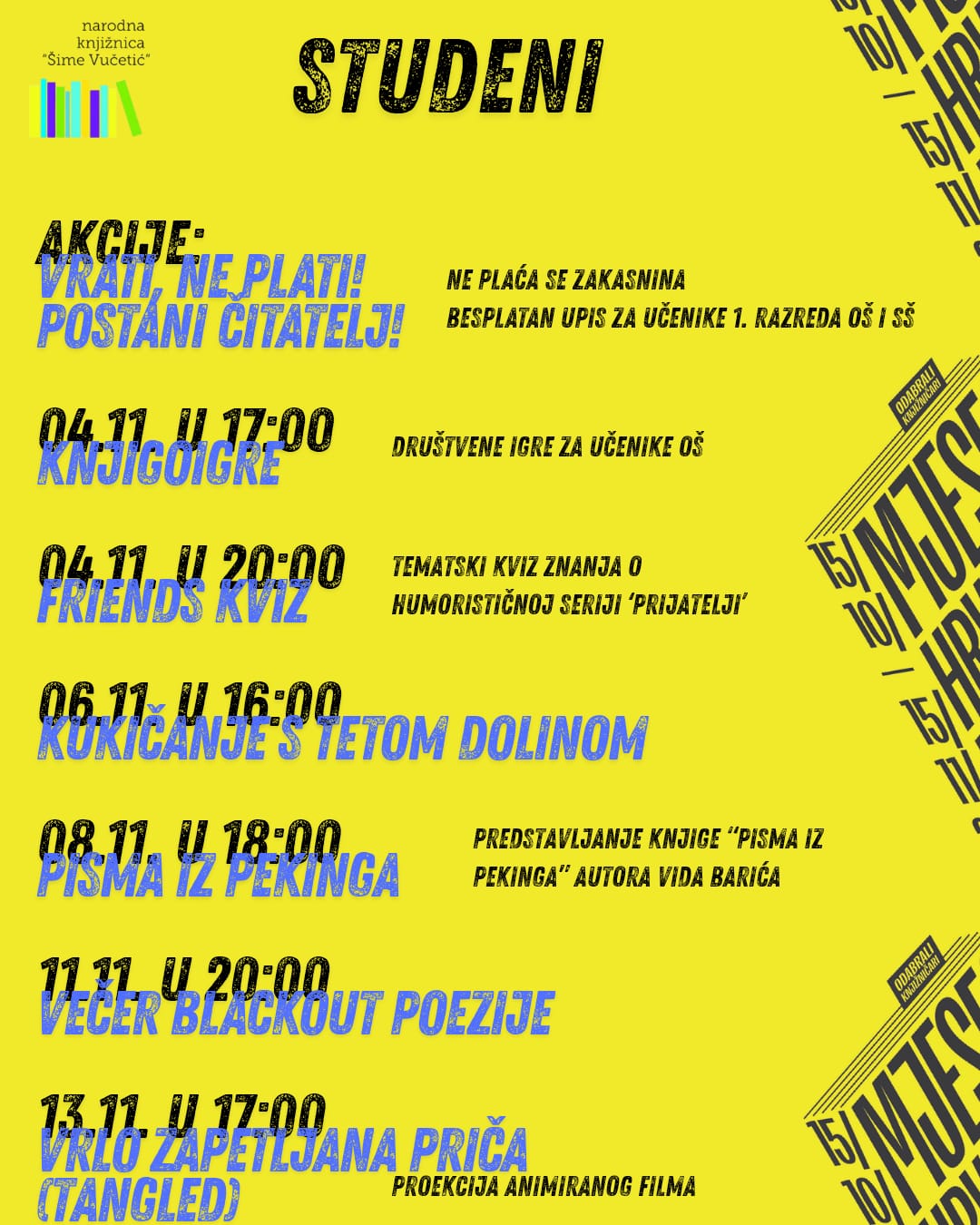 Pregled događanja pogledajte na plakatu i zabilježite datume u svoje kalendare.