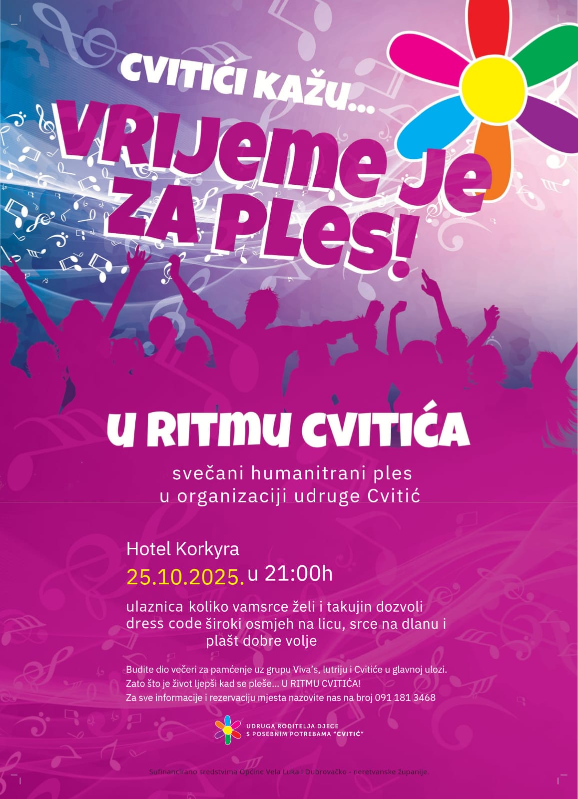 21 October 2025. Obavještavamo Vas da udruga roditelja djece s posebnim potrebama "Cvitić" oganizira svečani humanitarni ples u subotu 25.10.2025. godine u hotelu Korkyra s početkom u 21:00h.